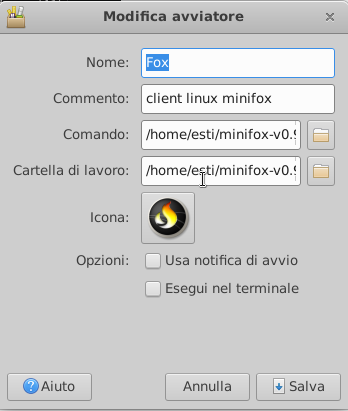 1. E’ sempre possibile (ad esempio con Xubuntu) crearsi un “launcher” da utilizzare nel men’ delle applicazioni.