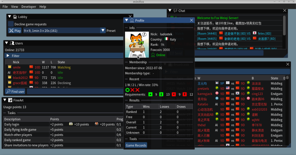 Per giocare una partita, nel modulo ‘Lobby‘, si clicca il menu’ a discesa del ‘Preset‘ per il time e il byoyomi da selezionare e una volta selezionato si clicca il button ‘Play‘.
