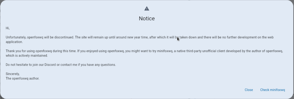 Accedendo con il client web viene, appena dopo il login, visualizzato l’annuncio che lo sviluppo del client web e’ stato interrotto e che contestualmente