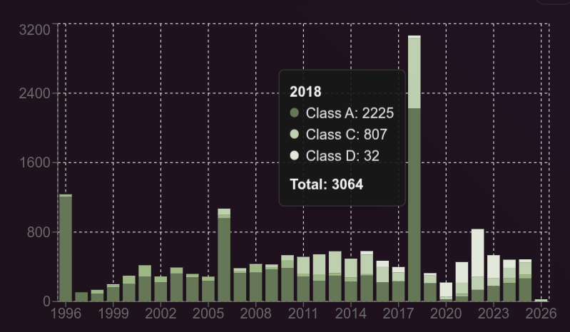 - Puoi confrontare quanto incidono i tornei di Classe A rispetto a quelli di Classe C in termini di partecipazione totale.