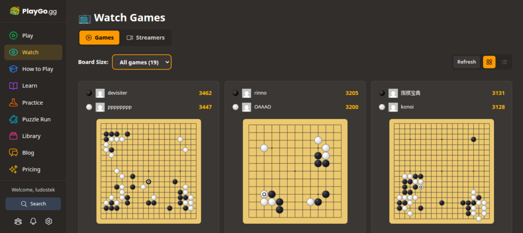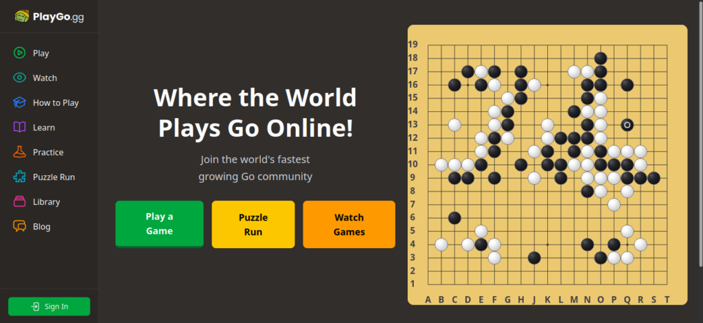 - Interfaccia Moderna: A differenza di server storici (come KGS o IGS/Pandanet) che hanno interfacce datate e client dedicati, PlayGo.gg e’ fluido, basato su web-browser e ottimizzato per la velocita’.