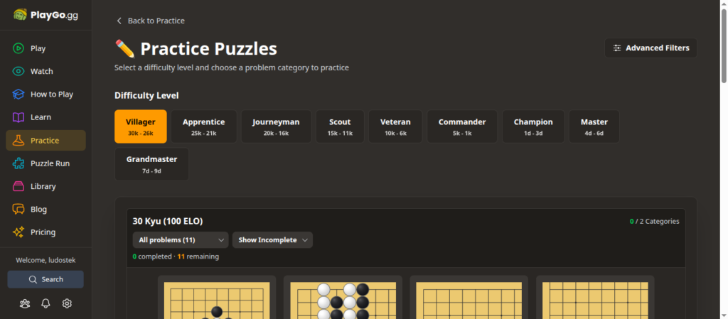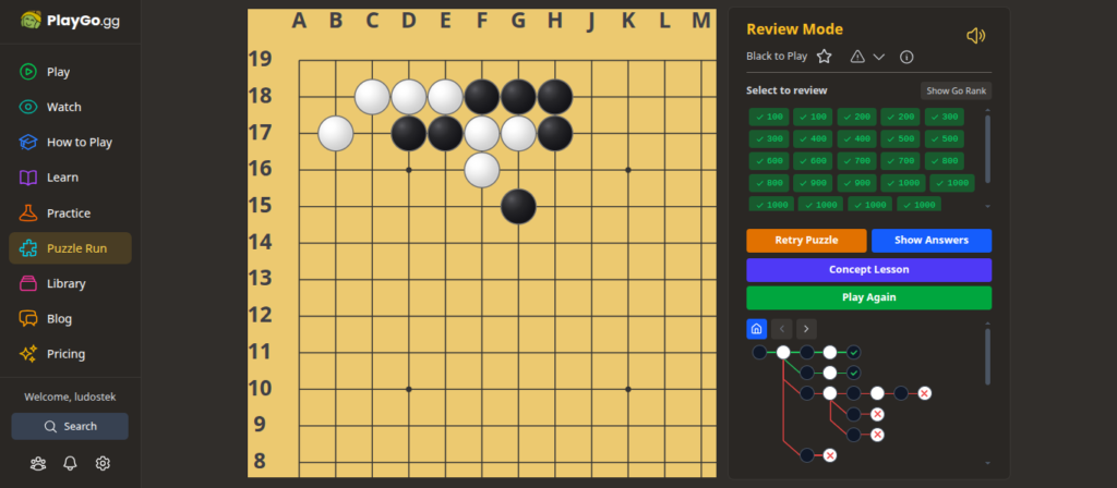- Sistema di Puzzle (Tsumego): Una vasta libreria di problemi tattici presentati in modo interattivo e con classifiche (leaderboard).