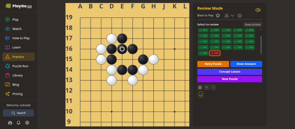 Se trovi siti come OGS (Online-Go.com) troppo spartani o i server asiatici (Fox, Tygem) troppo caotici e aggressivi, PlayGo.gg e’ l’ideale. E’ un ecosistema “tutto-in-uno” dove puoi giocare, studiare e ricevere feedback immediato dalla tecnologia AI senza dover configurare software esterni.