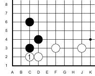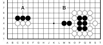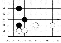 Quindi ricapitolando l’hane in seconda linea vale 14 punti, la cattura delle 6 pietre ne vale 13 e salvare la pietra bianca 12. Questo ci da’ l’ordine con cui vanno giocate le mosse.