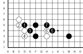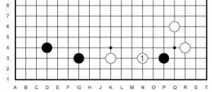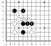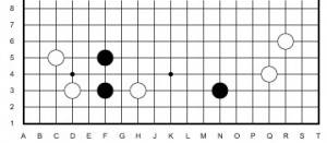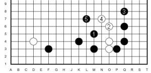 Il gruppo Nero si rafforza attaccando il gruppo forte di Bianco. In seguito tornerà sul gruppo debole.