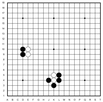 Riassumendo, quando posso dare una serie di atari consecutivi a 1 o piu’ pietre c’e’ una scala. Se durante il tragitto non c’e’ niente, o una mia pietra, catturero’ le pietre avversarie, ma se c’e’ una pietra avversaria farei solo danni a cercare di catturare le pietre. Pensa inoltre a questo: anche se una scala e’ a favore dell’avversario tu puoi fare una mossa, a volte molto grande, per cambiare l’esito della scala e quindi costringere l’avversario a catturare le pietre in scala.